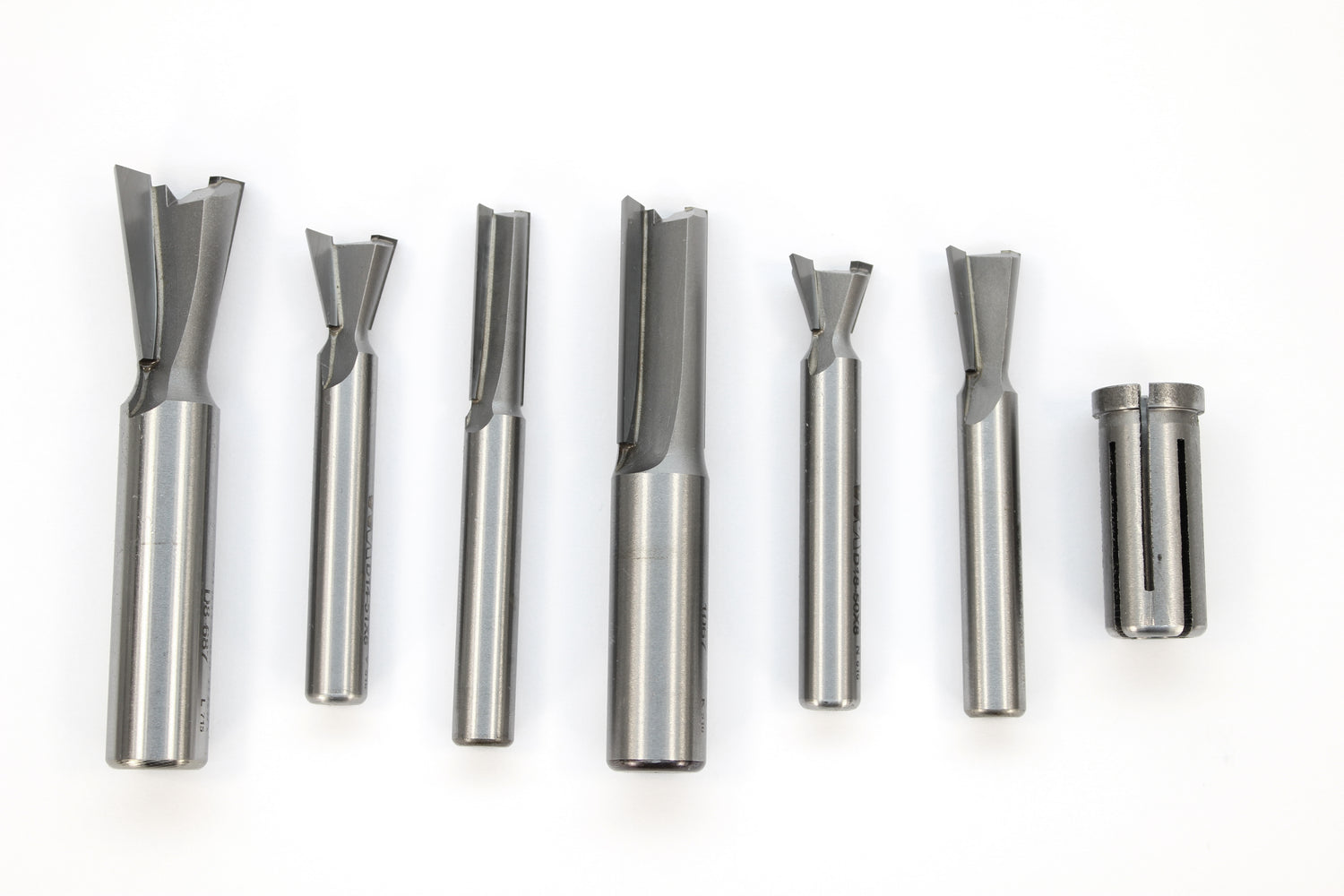 This popular 7 piece Whiteside dovetailing router bit sets features a nice assortment of straight and dovetail router bits sized to the exact Leigh specifications. We even reference the Leigh number to help you make your decision.