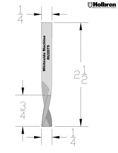 Whiteside RU2075 Standard Upcut Spiral Router Bit Solid Carbide 1/4" Cutting Diameter 3/4" Cut Length 1/4" Shank 2 Flute