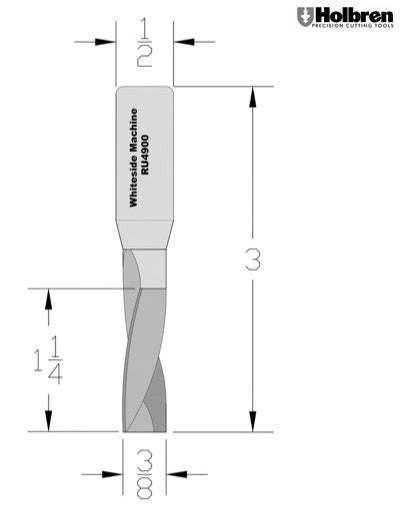 Whiteside RU4900 Standard Upcut Spiral Router Bit Solid Carbide 3/8" Cutting Diameter 1-1/4" Cut Length 1/2" Shank 2 Flute