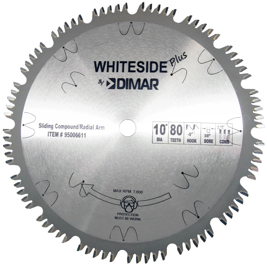 Whiteside Sliding Compound Miter Saw Blade 10" 80T ATB+R 5/8" Arbor